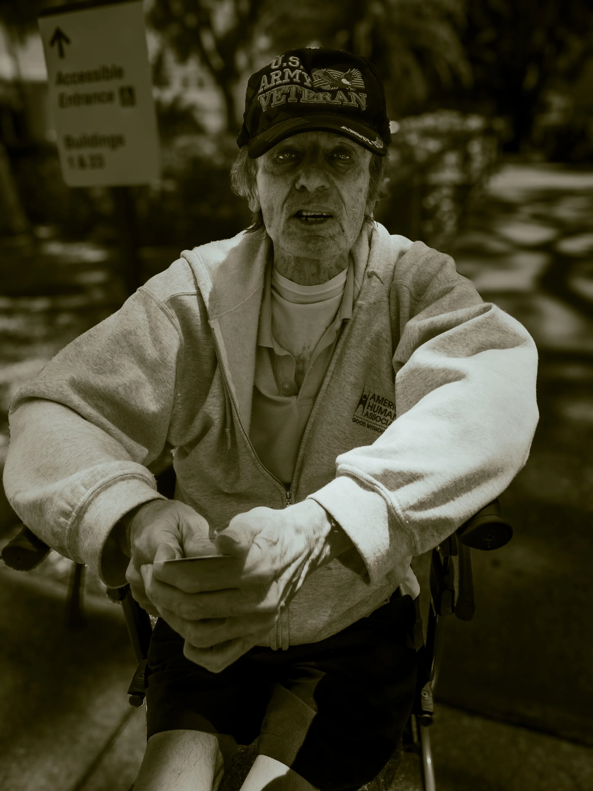 James - humanist… You meet interesting people at the VA. James was waiting for a bus back to Clearwater. I noticed the emblem on the front of his jacket, "American Humanist Society".. I went back and struck up a conversation. At one point he asked, "are you a humanist"? I said, "probably but I'm not a member." He' was born in Arnold, PA, was married "briefly" and subsequently moved to Florida. That's about all we got to share before the bus pulled up!