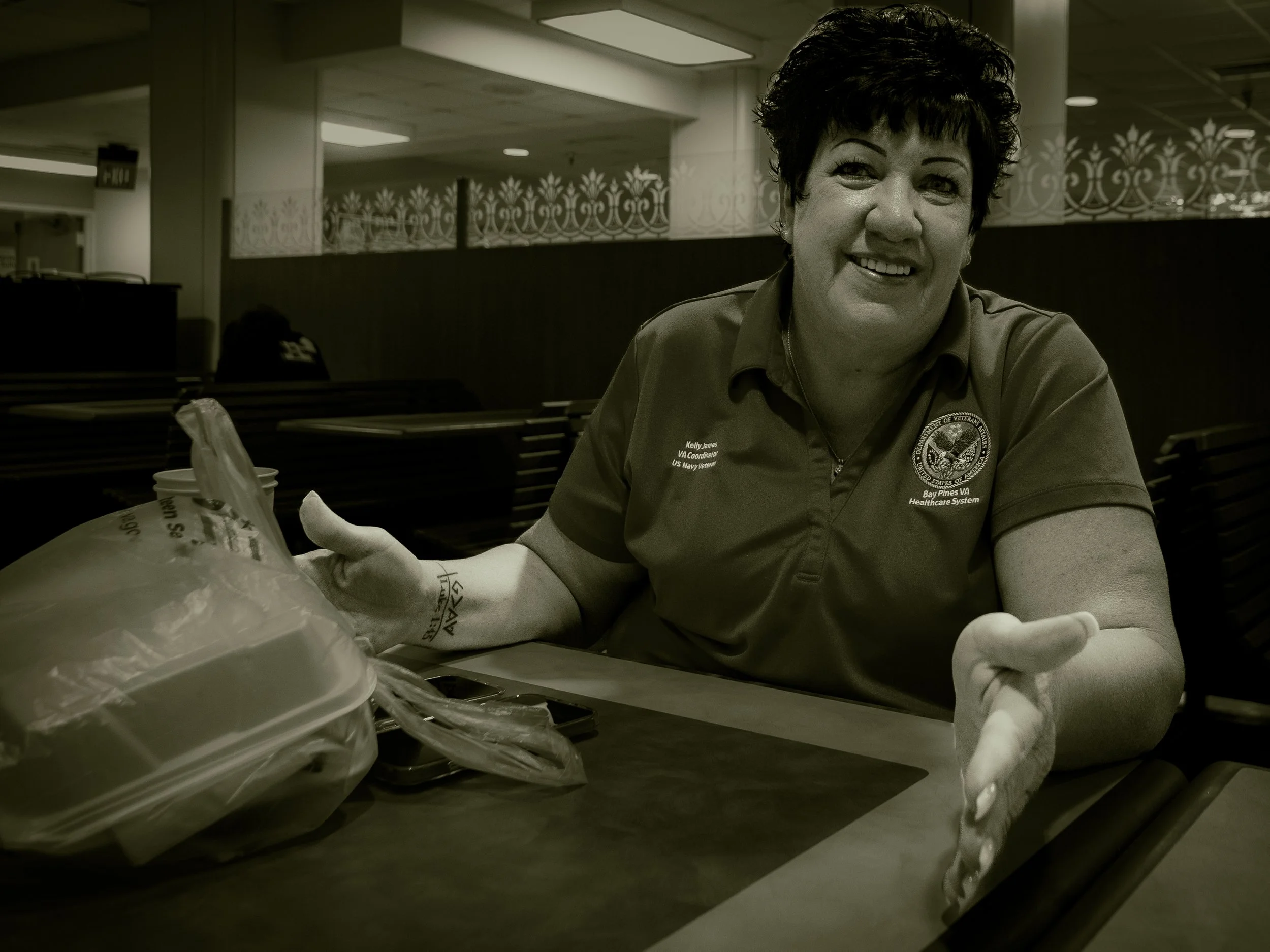 Kelly, an award winning Resource Officer employed at Bay Pines. She was one of the first women to serve aboard a US Navy ship. Kelly has 2 kids, the oldest is 19. She is interesting, and eager to talk!